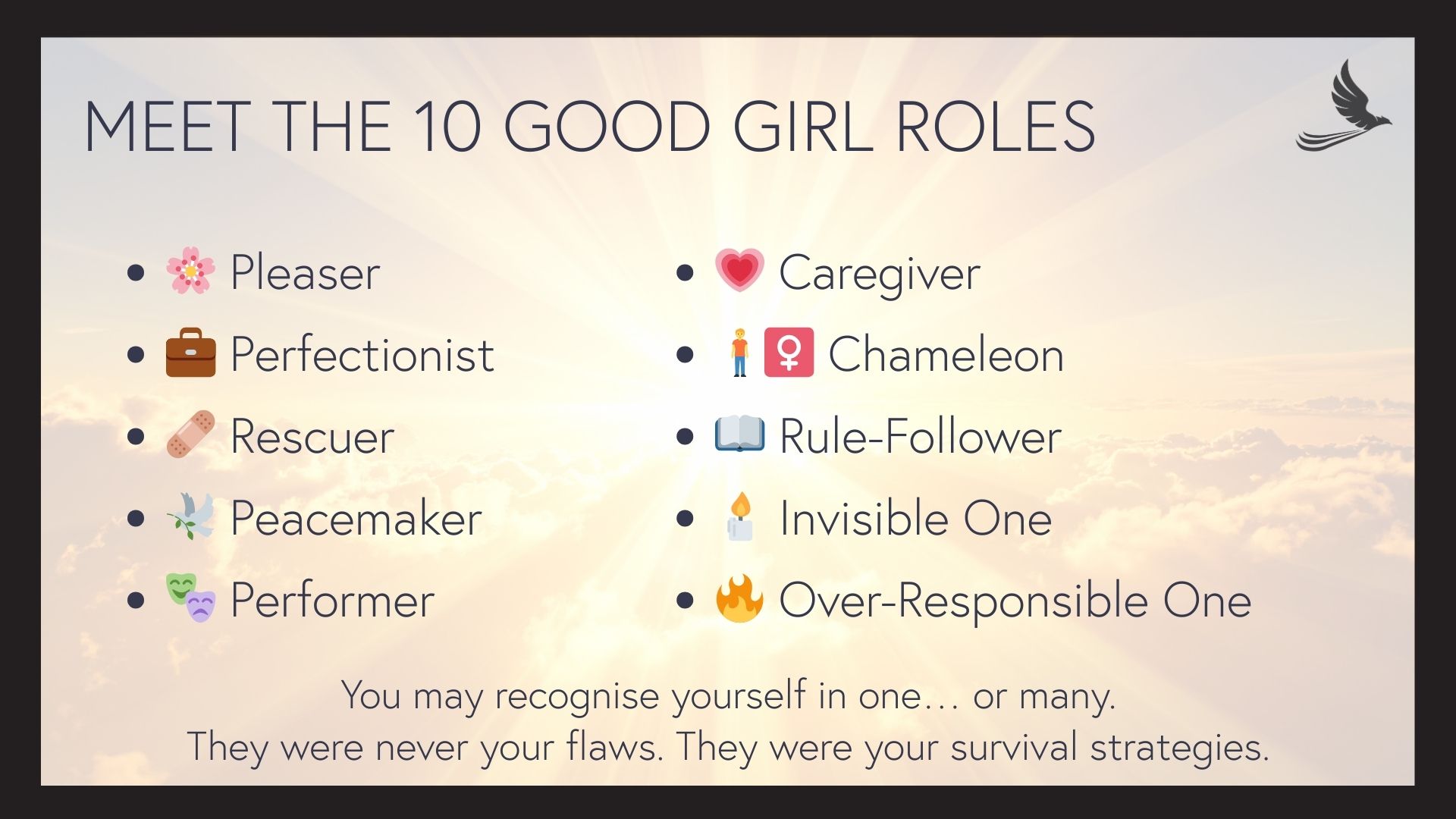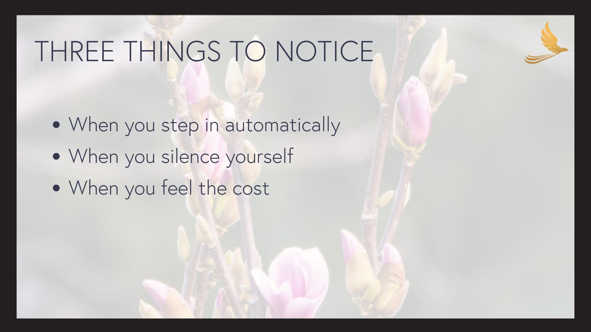 A clearer understanding of: * how learned patterns have shaped your behaviour * how roles like people-pleasing or over-functioning can show up * how boundaries, self-trust, and self-silencing connect * what a gentle next step could look like for you (if you want one)